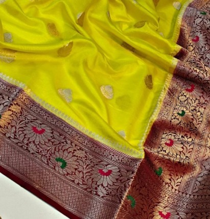 Banarasi silk fabric is a fine quality silk variant originating from Varanasi, Uttar Pradesh. Banarasi silk has its roots deep in the rich history of India. Saree woven from silk is known as Banarasi silk Saree, which is an extremely famous fabric all over India and the world. Banarasi sarees have a rich draping style, making them a beautiful choice for making a statement.